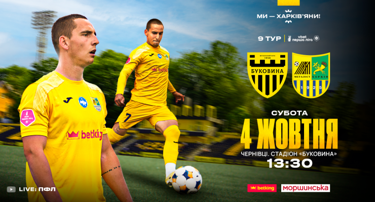 У матчі 9-го туру VBET Першої ліги харківський «Металіст» зіграє на виїзді проти чернівецької «Буковини».