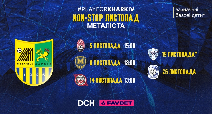 Харківське дербі між «Металістом» та «Металістом 1925» пройде в Ужгороді на стадіоні «Авангард». Початок — 8 листопада (вівторок) о 13:00. Юнацькі команди клубів зіграють 7 листопада об 11:00 на штучному полі стадіону «Авангард".